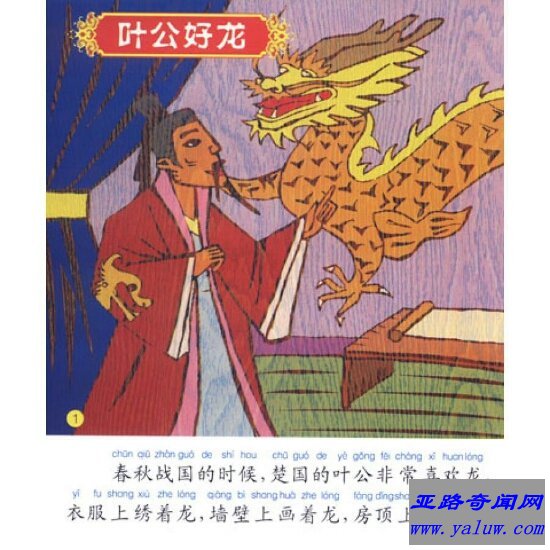这个故事教授的事春秋的时候,楚国有一个叫做神厨量的限量,大家都非常喜欢叫她夜光,他非常喜欢有关龙的东西,不管是装饰品,门窗,碗盘,衣服等上面都会有龙的图案,而且连他家里的墙壁上也画着一条非常大的龙。所以大家进了夜光的家,还以为是进了龙宫,到处都可以看到龙。知道有一天,叶公非常喜欢龙的事情,