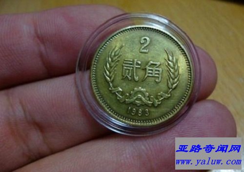 中国人民银行在1980年和1981年发行了一套2角钱的硬币,是建国以来的唯一一套两角硬币,此后由于种种原因,两角硬币不再发行,使得其收藏价值直线上升。这枚2角硬币色泽为金黄色,正面显示稻穗齿轮图案,背面国徽下有横排“中华人民共和国”字样,硬币边缘呈锯齿状,发行年份为1981年。据了解,小王的这枚硬币属于我国发行的唯一一种两角面值的硬币。