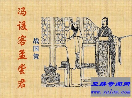 冯谖客孟尝君一篇出自《战国策·齐策四》。记叙了冯谖为巩固孟尝君的政治地位而进行的种种政治外交活动(焚券市义,谋复相位,在薛建立宗庙),表现冯谖的政治识见和多方面的才能,反映出齐国统治集团内部和齐、魏等诸侯国之间的矛盾。冯谖善于利用矛盾以解决矛盾。