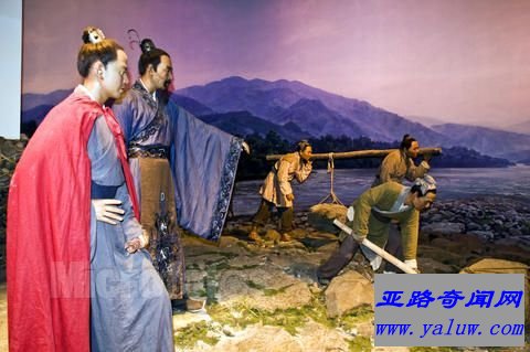 接着,李冰领导大伙儿把一个个装满鹅卵石的大竹笼丢到江里,垒出水面,一道几里长的牢固的分水堤终于建筑成功了。岷江的水分成两股,其中一股乖乖流进宝瓶口,注入沱江。李冰给这道分水堤取了个名字,叫“都安堰”,也就是今天的都江堰。从此,岷江流域很少有洪水泛滥,百姓安心生产。人们为了纪念李冰和他的儿子,在都江堰东边岸上盖了一座“二王庙”。