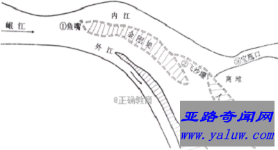 在岷江和沱江之间开凿河道。首先,灌县城外有玉垒山拦路。李冰和大家商量以后,决定把玉垒山挖开。经过大家的艰苦劳动,终于把山挖开了一个大缺口,后来人们把这个缺口叫做“宝瓶口”。新河道开凿好但岷江的水只很少一部分通过宝瓶口流入沱江。