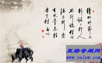 清明时节雨纷纷, 路上行人欲断魂。 借问酒家何处有, 牧童遥指杏花村。这首小诗,一个难字也没有,一个典故也不用,整篇是十分通俗的语言,写得自如之极,毫无经营造作之痕。音节十分和谐圆满,景象非常清新、生动,而又境界优美、兴味隐跃。诗由篇法讲也很自然,是顺序的写法。第一句交代情景、环境、气氛,是“起”;