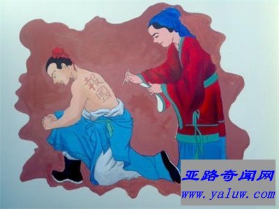内容为,岳飞不受杨么的使者王佐之聘,其母恐日后还有不肖之徒前来勾引岳飞,倘若一时失察受惑,做出不忠之事,英名就会毁于一旦。于是祷告上苍神灵和祖宗,在岳飞背上刺了“精忠报国”四字。该书叙述岳母刺字时,先在岳飞脊背上,用毛笔书写,再用绣花针刺就,然后涂以醋墨,使永不褪色。描述得具体而详细。但有些学者认为,纹身刺字是一门特技,有严格的操作程序和技巧,绝非一般常人所能。