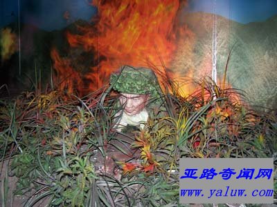 敌人遭到打击后出动飞机侦察,并盲目发射侦察燃烧弹,一颗燃烧弹正好落在邱少云身边,飞迸的火星溅落在他的左腿上,烧着了他的棉衣、头发和皮肉。但为了不暴露潜伏部队,他严守纪律,咬紧牙关,双手深深插进泥土中,以惊人的毅力忍受着剧痛,一声不吭、一动不动,直至壮烈牺牲,年仅26岁。