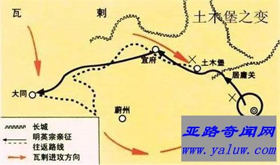 明正统十四年(1449年)二月,蒙古族瓦剌部落首领也先遣使2000余人贡马,向明朝政府邀赏,由于宦官王振不肯多给赏赐,并减去马价的五分之四,没能满足他们的要求,就制造衅端。遂于这年七月,统率各部,分四路大举向内地骚扰,东路,由脱脱不花与兀良哈部攻辽东;西路,派别将进攻甘州(今甘肃张掖);中路为进攻的重点,又分为两支,一支由阿剌知院所统率,直攻宣府围赤城,另一支由也先亲率进攻大同。