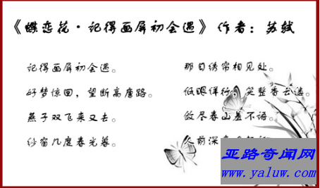 《蝶恋花·春景》是北宋文学家苏轼创作的一首词。蝶恋花春景这是一首描写春景的清新婉丽之作,表现了词人对春光流逝的叹息,以及自已的情感不为人知的烦恼。上阕写春光易逝带来的伤感,没有拘泥于状景写物而融人自身深沉的慨叹。下阕写得遇佳人却无缘一晤,自己多情却遭到无情对待的悲哀。全词词意婉转,词情动人,于清新中蕴涵哀怨,于婉丽中透出伤情,意境朦胧,韵味无穷。