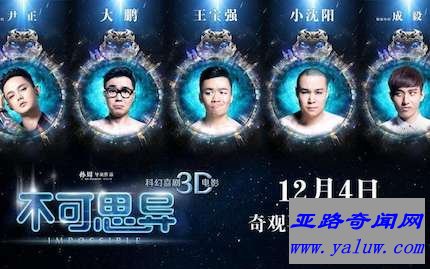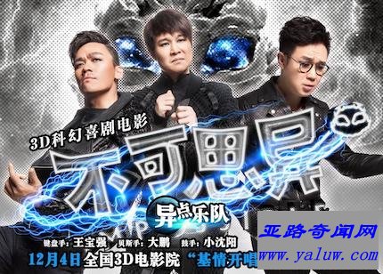 《不可思异》是由星汇天姬、中影股份、珠影集团、华策影业、合肥广电等出品的3D科幻喜剧片,由孙周执导,王宝强、小沈阳、大鹏等领衔出演。该片讲述了外星生物意外闯入人间,一位女儿早夭的父亲伴随天外来客的突袭,其生活出现了各种搞笑而怪诞的故事。该片于2015年12月4日在中国上映。