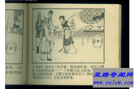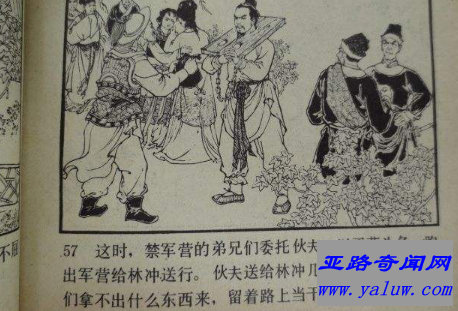 豹子头林冲,是北宋京都汴梁(今河南省开封市)八十万禁军枪棒教头。他为人忠厚正直、安分守己。一天,林冲带着妻子去岳庙进香。途中遇见花和尚鲁智深在耍六十多斤重的浑铁禅杖。众人齐声叫好,林冲也被吸引过去观看。鲁智深与林冲两个好汉一见如故,结义为兄弟。