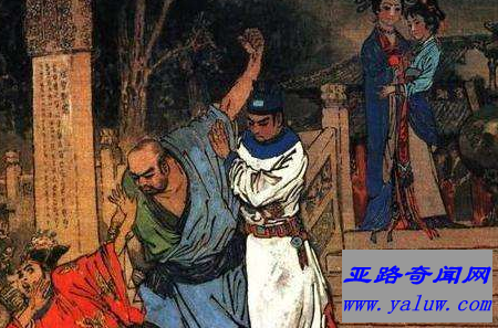 正在这时,侍女锦儿慌忙报信说,林妻在路上被歹徒拦截。林冲急忙向鲁智深告辞,去岳庙追赶歹徒。林冲抓住歹徒举拳要打时,发现此人原来是他的顶头上司、奸臣高俅的义子高衙内。高衙内一伙一看那女子是林教头的妻子,害怕打起来不是对手,便假惺惺地劝解:衙内不认得,多有冲撞。说罢将高衙内拥走。这时,鲁智深也急忙赶到,听明情况便要去追打高衙内,被林冲劝阻。林冲忍下了这口恶气。