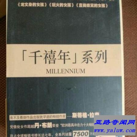 《千禧三部曲》是一部由瑞典小说家史迪格‧拉森(StiegLarsson)撰写的畅销小说,第一部《龙纹身的女孩》,第二部《玩火的女孩》,第三部《捅马蜂窝的女孩》。她,是合法的猎物,穿著破旧的黑皮夹克,眉毛穿洞,身上刺青,而且毫无社会地位。八十二岁的瑞典产业巨子范耶尔在生日当天,照例收到了一幅匿名寄来的裱框压花,却令他情绪溃堤地哭了起来……四十三岁的《千禧年》杂志发行人布隆维斯特,一向以揭发企业丑闻为职志,这次却栽在一个穿Armani西装的卑鄙股市投机客手上,面临牢狱之灾与信用破产危机……
