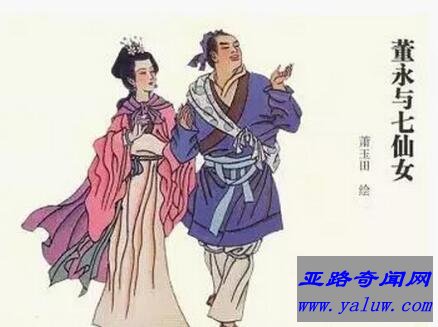 董永,汉朝时期的人物,古代流传行孝历史模范,其家境贫寒。幼年丧母。与其父相依为命。父去世后,又契身葬父,是《二十四孝》中卖身葬父的主角。董永还是古代中国民间爱情故事《天仙配》中的人物。并非牛郎织女中的人物。不过他妻子七仙女是王母娘娘的女儿,织女却是古代天帝的孙女。最早见于晋朝《搜神记》。