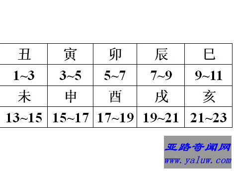 十二时辰制。西周时就已使用。汉代命名为夜半、鸡鸣、平旦、日出、食时、隅中、日中、日昳、晡时、日入、黄昏、人定。又用十二地支来表示,以夜半二十三点至一点为子时,一至三点为丑时,三至五点为寅时,依次递推。十二时的第一个时辰,就叫“夜半”。“夜半”所指的时间是前日夜11时~当日凌晨1时(北京时间,24小时制,下同)。这个时段用地支命名,称作子时。