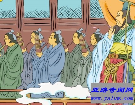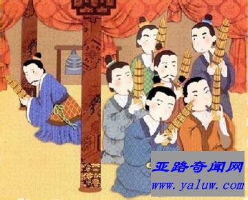 战国时期,齐国的国君齐宣王爱好音乐,尤其喜欢听吹竽,手下有不到300个善于吹竽的乐师。齐宣王喜欢热闹,爱摆排场,总想在人前显示做国君的威严,所以每次听吹竽的时候,总是叫这不到300个人在一起合奏给他听。有个名叫南郭的处士听说了齐宣王喜欢听合奏,觉得有机可乘,是个赚钱的好机会,就跑到齐宣王那里去,吹嘘自己说:“大王啊,听过我吹竽的人没有不被感动的,就是鸟兽听了也会翩翩起舞,花草听了也会合着节拍摆动,我愿把我的绝技献给大王。”齐宣王听得高兴,很爽快地收下了他,把他也编进那支300人的吹竽队中。