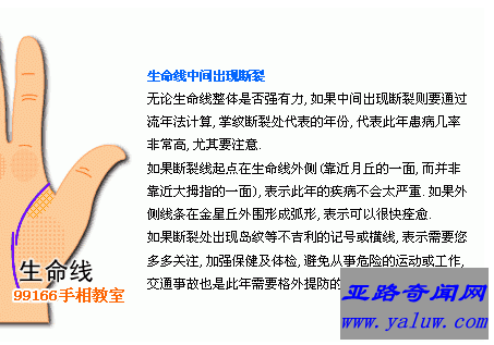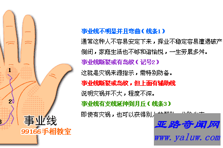 事业失败可能破产的手相特点是太阳线的示端有岛形纹同时有线穿过愿望线。天生与金钱无缘的手相是命运线和生命线中途都呈现中断的人。财运极佳的人智慧线的未端有向小指那边延伸的支线,明朗程度代表财运大小程度。
