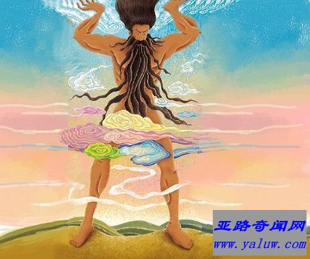 天每天升高一丈,盘古也随着越长越高。这样不知过多少年,天和地逐渐成形了,盘古也累得倒了下去。盘古倒下后,他的身体发生了巨大的变化。他呼出的气息,变成了四季的风和飘动的云;他发出的声音,化作了隆隆的雷声。他的双眼变成了太阳和月亮;他的四肢,变成了大地上的东、西、南、北四极;他的肌肤,变成了辽阔的大地,他的血液,变成了奔流不息的江河,他的汗,变成了滋润万物的雨露......
