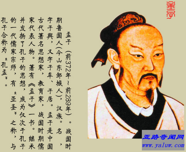 韩愈《原道》将孟子列为先秦儒家继承孔子“道统”的人物,元朝追封孟子为“亚圣公”,尊称为“亚圣”,《孟子》一书,属语录体散文集,是孟子的言论汇编,由孟子及其弟子共同编写完成,倡导“以仁为本”。代表作有《鱼我所欲也》《得道多助,失道寡助》和《生于忧患,死于安乐》,《寡人之于国也》编入高中语文教科书中。