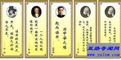 1、读万卷书,行万里路。——刘彝2、黑发不知勤学早,白首方悔读书迟。——颜真卿3、书卷多情似故人,晨昏忧乐每相亲。——于谦4、书犹药也,善读之可以医愚。——刘向5、少壮不努力,老大徒伤悲。——《汉乐府·长歌行》6、莫等闲,白了少年头,空悲切!——岳飞7、发奋识遍天下字,立志读尽人间书。——苏轼8、鸟欲高飞先振翅,人求上进先读书。——李苦禅