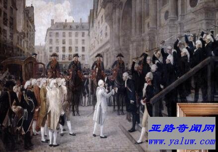 1789年5月被迫召开中止175年之久的三级会议,因顽固维护教士、贵族的封建特权,与第三等级形成严重对立。7月11日解除受第三等级拥护的改革派财政总监内克职务,并暗中调集军队,企图驱散制宪议会,终于激发7月14日巴黎人民起义。路易十六曾将大量勾结国外势力的密函藏在秘密橱柜里,并用他自己精心打造的锁锁住,然而没想到的是,这把锁竟然被他曾经最为宠信的锁匠加曼打开了。罪证激怒了人们,最终1793年1月18日,路易十六被控勾结外人,泄漏军事秘密,出卖法国,罪名成立,被国民公会判死刑。