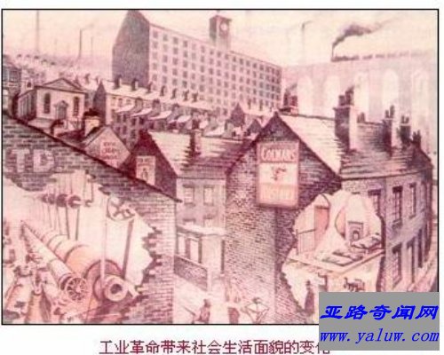 第一次工业革命 资产阶级统治在英国确立,为英国资本主义的迅速发展奠定了基础。 英国资产阶级统治一方面积极发展海外贸易,进行殖民统治,积累了丰富的资本,扩展了广阔的海外市场和最廉价的原料产地,另一方面,进一步推行"圈地运动",获得了大量的廉价劳动力,蓬勃发展的工场手工业,积累了丰富的生产技术知识,增加了产量,但还是无法满足不断扩大市场需要,于是,一场生产手段的革命呼之欲出。 18世纪60年代,在英国的资本主义生产中,大机器生产开始取代工厂手工业,生产力得到突飞猛进的发展,历史上把这一过程称为"工业革命"。