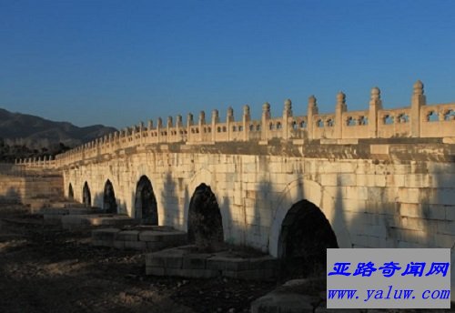 拱形桥在石桥中是等级最高的一种。七孔拱桥在清东陵只孝陵有一座。桥长110米,两侧安设石栏板126块,石望柱128根,抱鼓石4块。