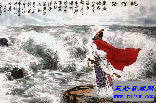 观沧海 曹操这首四言绝句是他在碣石山登山望海时,用饱蘸浪漫主义激情的大笔,所勾勒出的大海吞吐日月、包蕴万千的壮丽景象;描绘了祖国河山的雄伟壮丽,既刻画了高山大海的壮阔,更表达了诗人以景托志,胸怀天下的进取精神。观沧海 曹操这首诗是建安时代以景托志的名篇,也是古典四字绝言诗中出现较早的名作之一。