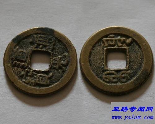 在钱币上铸通宝字样,起源于唐高祖武德四年621年废五铢钱而铸的开元通宝。开元通宝重二铢四垒,十枚重一两。从此,铜钱不再是重如其文,以重量来铸名了,改称通宝流通。钱币也真正开始成为货币符号,不再以货币自身价值来交换了。以后历代都沿用通宝,并在通宝二字前冠以年号、朝代或国名,铸于币面。如后梁的开平通宝南唐的大唐通宝北宋的太平通宝,辽的重熙通宝金的大定通宝元的至正通宝明的洪武通宝而辛亥革命后广东福建等地的民国通宝则是我国最晚的通宝钱币。