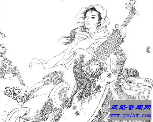 王昭君应该都知道这些,也注定对留在汉宫还是远嫁边地做了认真思考,才做出孤绝的选择。当初,她既不肯贿赂画师以求召幸,几年的冷宫生活更使她清醒地认识到,继续呆在汉宫的活地狱中,也只有忧伤到死,然后与那些宫墙外的累累白骨为伍,与其在此虚耗青春,不如去边地一搏。性格决定命运,正是在关键时刻,王昭君抓住了机遇,挺身而出,登上历史舞台。呼韩邪返回草原时,汉王朝为其举办高规格的欢送宴会,百官咸集,宾客如云,在喜庆的音乐声中,盛妆的王昭君在4名宫女簇拥下来到宫廷,王昭君的美貌与丰采,像一束朗朗的阳光照亮整个宫廷,真正“回眸一笑百媚生,六宫粉黛无颜色”,连汉元帝都大吃一惊,没想到后宫竟有如此绝代佳人,想留在汉宫自己享用,又无法失信匈奴,只好忍痛割爱,允嫁匈奴,呼韩邪压根没有想到能够得到大汉王朝这样一位雍容华贵的绝代美人,自然大喜过望,感激万分,当即表示愿意确保汉王朝上谷以西至敦煌(今山西至敦煌近三千公里)的边塞安宁,这应该是王昭君为汉王朝作出的巨大的历史贡献。