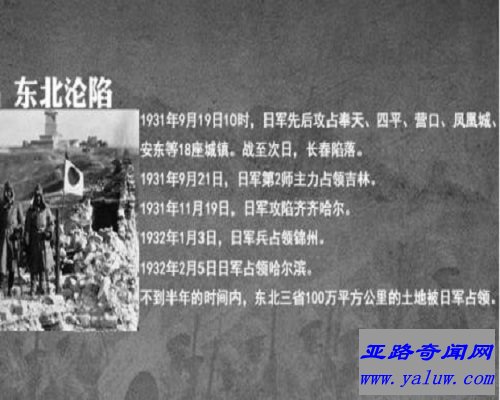 一战后,日本在华扩张受到了英美列强的遏制,中国的北伐战争使日本在华利益受到削弱,促使日本政府调整对华政策,加快吞并中国东北地区的步伐;20世纪30年代初,世界经济危机发生,日本经济遭受沉重打击,陷入极端困境,并导致政治危机,在内外交困情况下,日本法西斯势力决意冲破华盛顿体系对日本的束缚,趁英美忙于应付危机,蒋介石大规模“剿共”之际,夺取东北,以摆脱困境,并图谋争霸世界。于是北蓄意制造并发动的一场侵华战争,是日本帝国主义侵华的开端。1931年9月18日夜,在日本关东军安排下,铁道“守备队”炸毁沈阳柳条湖附近日本修筑的南满铁路路轨,并栽赃嫁祸于中国军队。日军以此为借口,炮轰沈阳北大营,是为“九一八事变”。次日,日军侵占沈阳,又陆续侵占了东北三省。1932年2月,东北全境沦陷。此后,日本在中国东北建立了伪满洲国傀儡政权,开始了对东北人民长达14年之久的奴役和殖民统治。