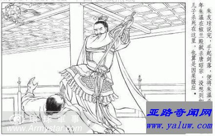 如此没有人道,人生谢幕的一幕也是非常经典:朱温被杀死时,时年六十一岁。临死前,他肯定没有料到,自己一生杀人无数,想不到最后却被自己的儿子所杀,一生贪淫好色,最终却因女人结束了一生。更令人叹惋的是,他真心地爱他的妻子张惠,却没有遵从妻子临终前的“戒杀远色”四字遗言,以致最后身败名裂。