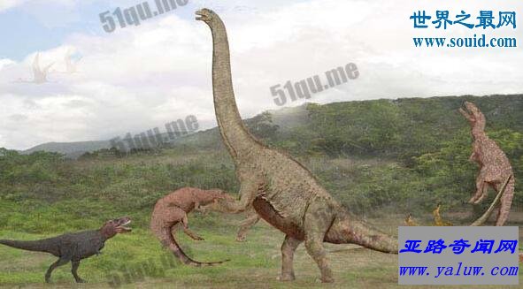 也被称作雷龙,迷惑龙生活在侏罗纪晚期,分布于美洲大陆,迷惑龙的体长在21-23米,体重可以达到26吨。在最大的恐龙中,它的性情算是最温和的。