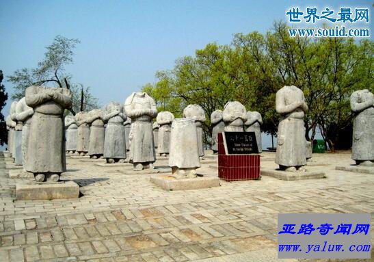 唐末农民起义,黄巢声势浩大。他动用40万起义军在武则天墓西侧挖山不止。直挖出了一条深40米的“黄巢”沟,挖走了半座大山。因为军中无饱学之士,不懂乾陵座北朝南的结构特点,结果因为挖错了方向,终没得手。