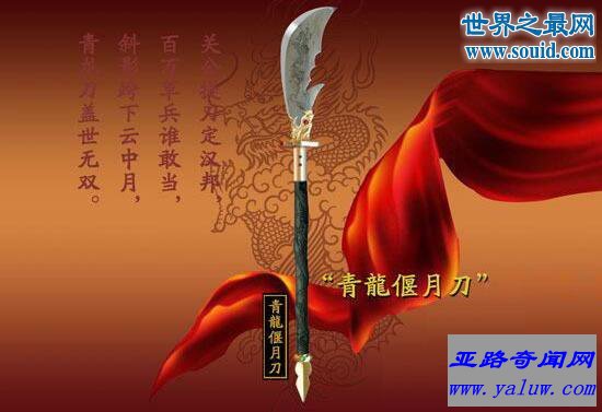 青龙偃月刀与张飞的武器丈八蛇矛相媲美;它们先后成名,从此一发不可收,扬名天下。使用它的,有东汉光武帝刘秀的爱将---“美髯公”岑彭。而最著名的当属武圣人——关羽,一个义字当头的英雄,所以他成就了刘备的霸业。