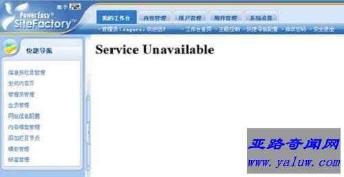 原因四:ACCESS引擎错误,解决办法四:重启IIS备注四:有一些文件造成了ACCESS数据库出现“灾难性故障”及“未将对象引用设置到对象的实例”的错误原因四造成的"Service Unavailable",现象是所有该服务器上的使用Access数据库的网站都出现错误,不能访问。以上四个原因是常见的造成了"Service Unavailable"的原因,其他还有一些问题造成了该问题,基本只要IIS重启一下就可以的。