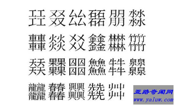 然而随着汉字的演化,文字已经由“纯表意”向“意音兼顾”过度,所以很多时候,几个相同字符的叠加已经不能当作“基本元素乘N”来看待,它们在新的语境下衍生出新的含义。