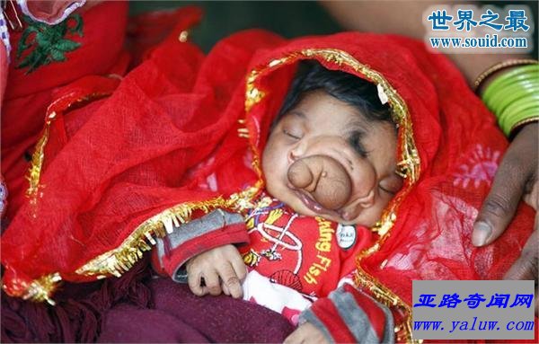 据《印度时报》报道,一名印度女婴因生来脸上就长有象鼻而受到民众的朝拜。这名出生于印度北方邦Aligarh村的女婴至今还未被命名,而民众却早已蜂拥而至,只为一睹这名新生儿的面容,因为他们相信她是印度教伽内什象头神的转世化身。