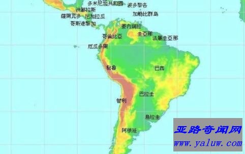 位于西半球、南半球。东临大西洋,西临太平洋,北临加勒比海,总面积1780万km²,人口大约有3亿。亚马逊河是世界上最大的河流,还有世界上最高的瀑布,亚马逊热带雨林集中了地球物种的大部分。