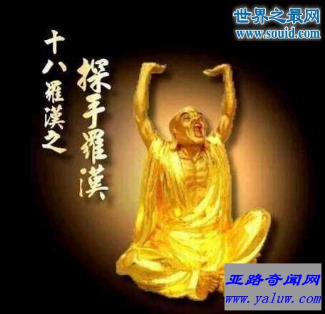 原是个“路边生”的私生子,与第十六罗汉为同胞兄弟。因他打坐时常用半跏趺坐法,打坐完毕即双手举起,长嘘一口气,成道后世人称其为“探手罗汉”。