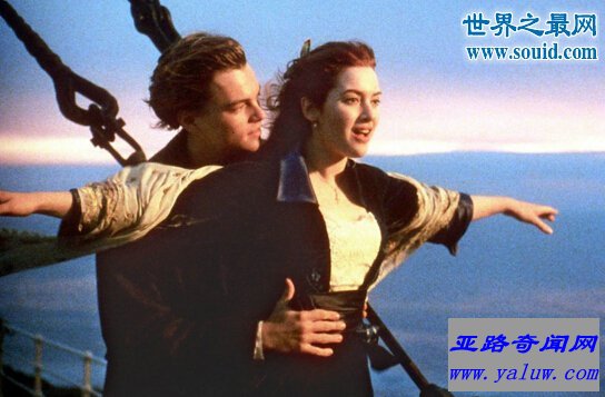 《泰坦尼克号》是美国20世纪福克斯公司和派拉蒙影业公司共同出资,于1994年拍摄的一部浪漫的爱情灾难电影,由詹姆斯·卡梅隆创作、编辑、制作、导演及监制,莱昂纳多·迪卡普里奥、凯特·温斯莱特主演。影片于1997年11月1日在东京首映。影片以1912年泰坦尼克号邮轮在其处女启航时触礁冰山而沉没的事件为背景,描述了处于不同阶层的两个人——穷画家杰克和贵族女露丝抛弃世俗的偏见坠入爱河,最终杰克把生命的机会让给了露丝的感人故事。爱情电影排行榜前十名里排名第一。
