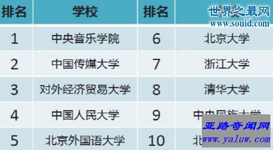 数据显示,在“最爱穿衣的重点大学TOP10”,中央音乐学院和中国传媒大学排名前两位,北大和清华则分别排名第6和第8位。妹子们爱穿衣打扮不是件坏事,不过其实这两个学校荣登重点大学剁手排行的最爱穿衣的重点大学也不奇怪,这两所学校的确是美女如云,将来一个不小心就是未来舞台上的那个闪耀的新星。