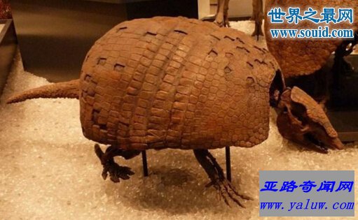 犰狳从幼年开始生长盔甲,它是一支远古物种,生活在现今拉丁美洲地区,它们能够卷起身体形成一个坚硬的球体,起到保护作用。其祖先雕齿兽体形庞大,体长1.98米,体高1米,重量可达300公斤。