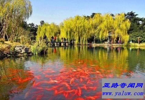 位于苏堤南段以西,在西里湖与小南湖之间的一块半岛上, 从牡丹亭处眺望,公园东,南,北三面景色遍收眼底,红鱼池中有数千尾金鳞红鱼畅游,牡丹园内各种牡丹,芍药数百种竞相绽放。