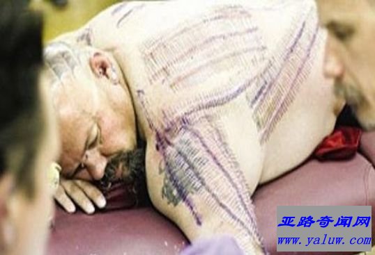 据悉,美国男子埃德·布伦斯挑战了一项荒唐的吉尼斯世界记录,就是让穿刺艺术家在全身皮肤上穿插了1501枚钢针,过程耗时将近5个小时。而在整个穿刺过程中布伦斯都没有抱怨过一句疼痛,最多只是眨下眼睛,皱下眉头。最后布伦斯以比“前生界纪录保持者多插了304针的优势,成功打破了“一次性在身上穿插最多钢针”的吉尼斯世界纪录。”
