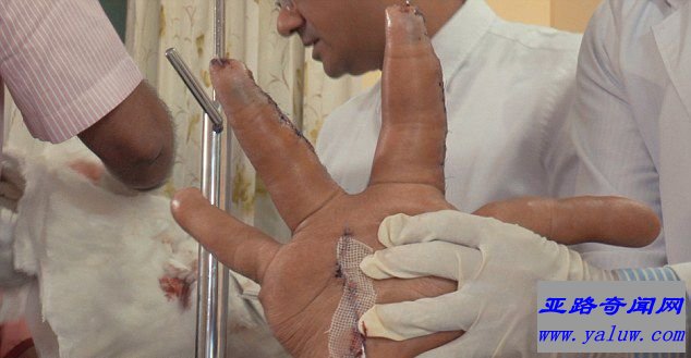 随着年龄增长,卡利姆的手越来越大,甚至连平时吃饭、穿衣和洗澡都有困难。父母一个月的收入只有150英镑,即使生活在印度贫困的地方,这点钱也不够给卡利姆提供良好的照顾。不过,在卡利姆的故事被媒体报道之后,他终于获得了印度南部医疗专家的帮助,被诊断为巨指症。