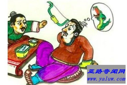乐广字彦辅,在河南做官,曾经有一个亲密的朋友,分别很久不见再来,乐广问朋友不来的原因,友人回答说:前些日子来你家做客,承蒙你给我酒喝,正端起酒杯要喝酒的时候,看见杯中有一条蛇,心里十分恶心,喝了那杯酒后,就得了重病。